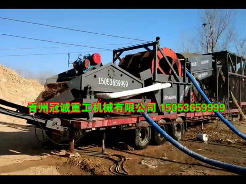 【臨沂洗砂機】臨沂移動式破碎洗石機工作現(xiàn)場